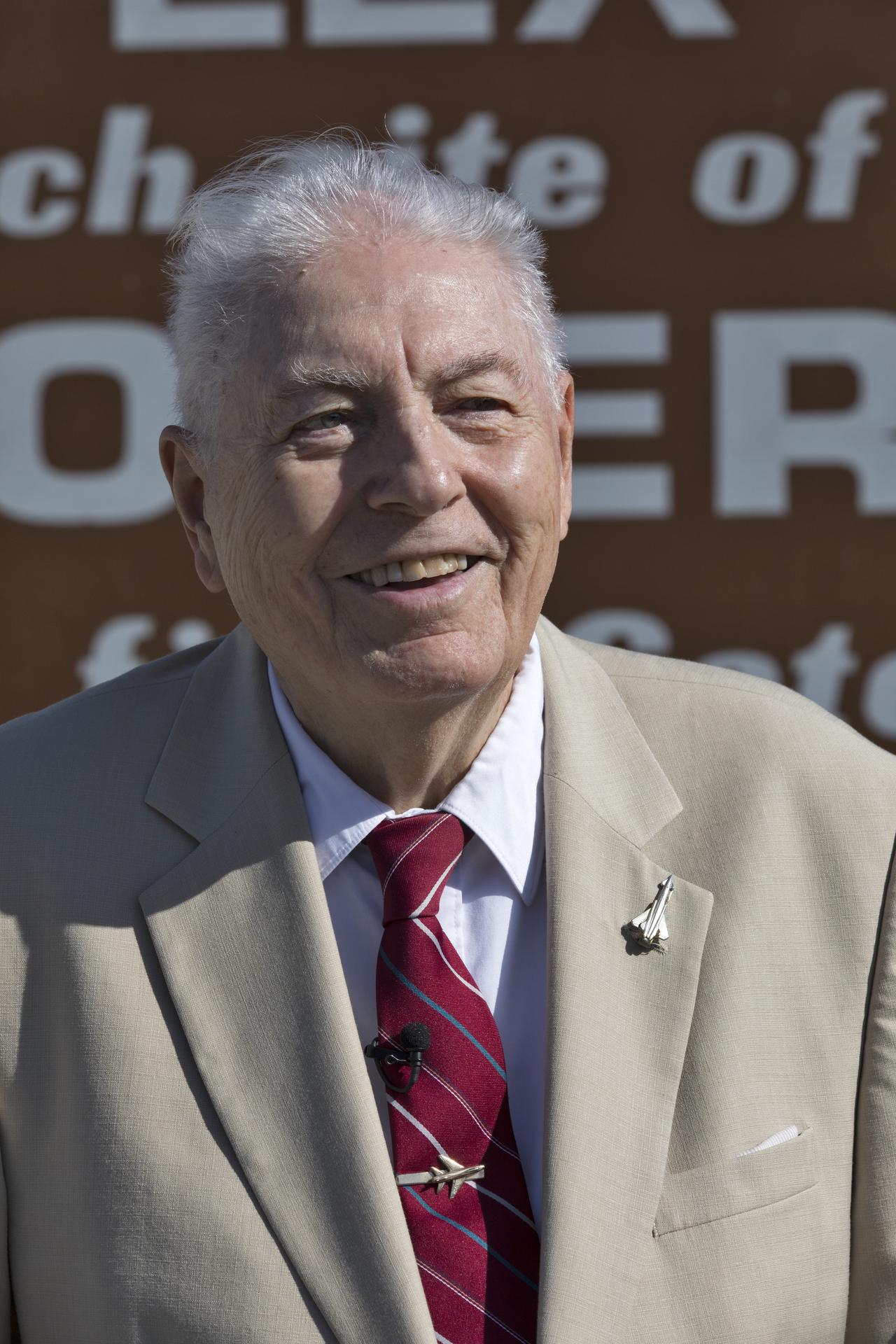 Dr. John Meisenheimer, launch weather officer for Explorer 1, speaks to guests at an event celebrating the 60th anniversary of America's first satellite. The ceremony took place in front of the Space Launch Complex 26 blockhouse at Cape Canaveral Air Force Station where the Explorer 1 satellite was launched atop a Jupiter C rocket on Jan. 31, 1958. During operation, the satellite's cosmic ray detector discovered radiation belts around Earth which were named for Dr. James Van Allen, principal investigator for the satellite.