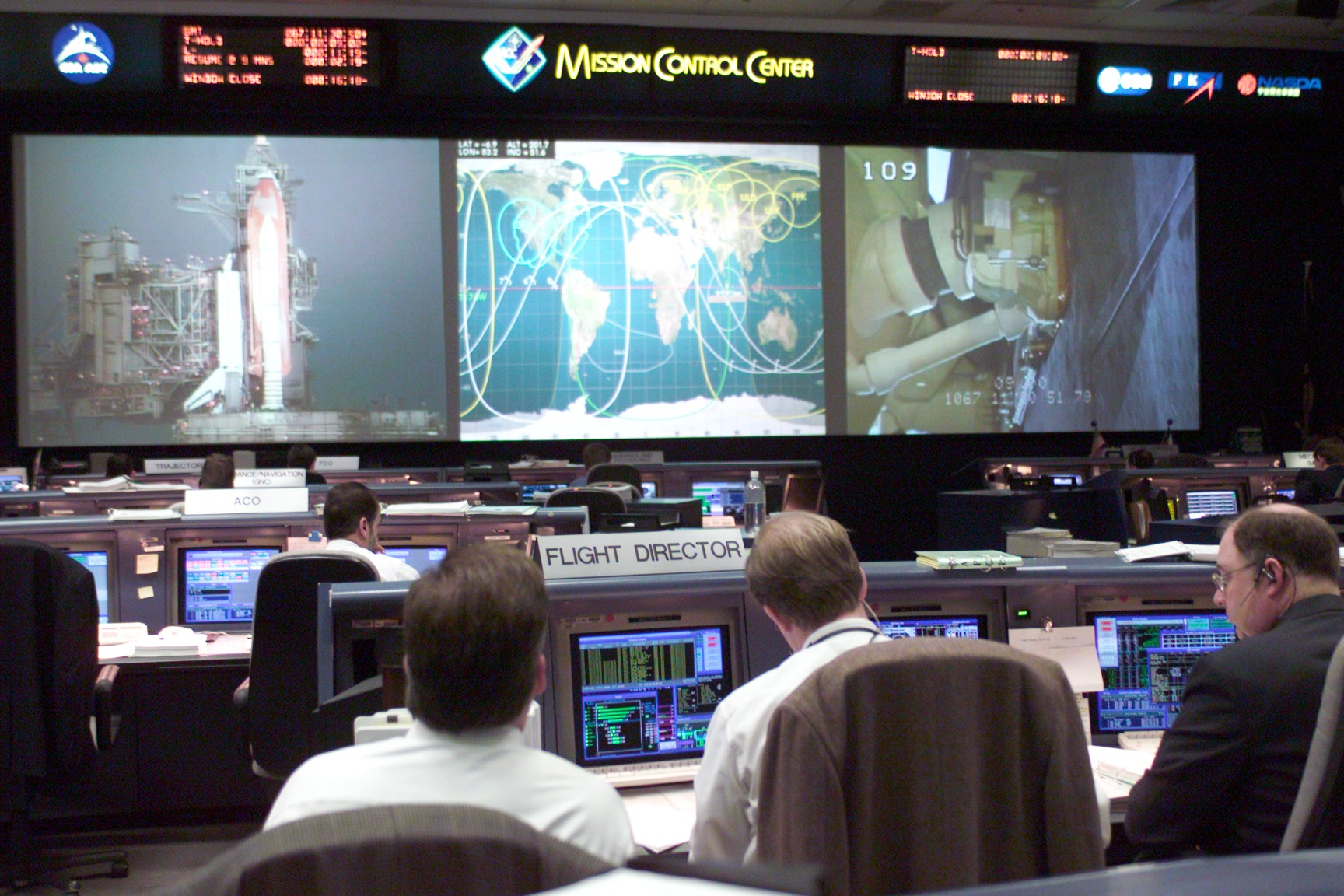 JSC2001-E-06210 (8 March 2001) --- As STS-102 Discovery liftoff countdown proceeds at the Kennedy Space Center (KSC)in Florida, flight controllers in Houston follow the progress at their assigned consoles. Ascent flight director Wayne Hale views his monitor at right.