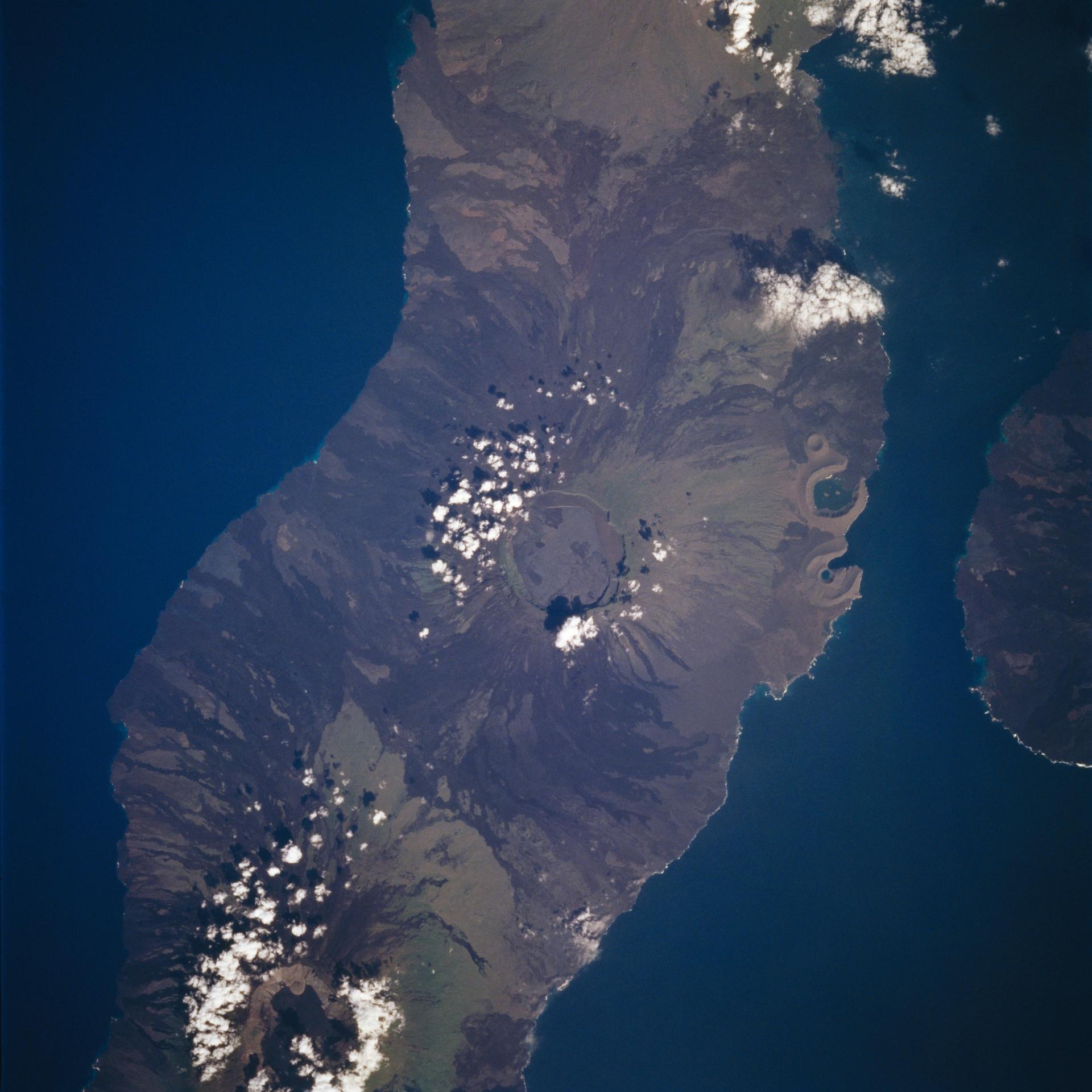 STS059-213-019 (9-20 April 1994) --- SRL scientists will use these photographs with the radar imagery to discriminate among different ages of basalt flows, and different ecosystems of shrub communities, on these equatorial volcanic islands. Aims are twofold: to understand the history of physical and biological systems on the islands themselves, and to extend what is learned to other, less-well-known areas globally. Hasselblad photograph.