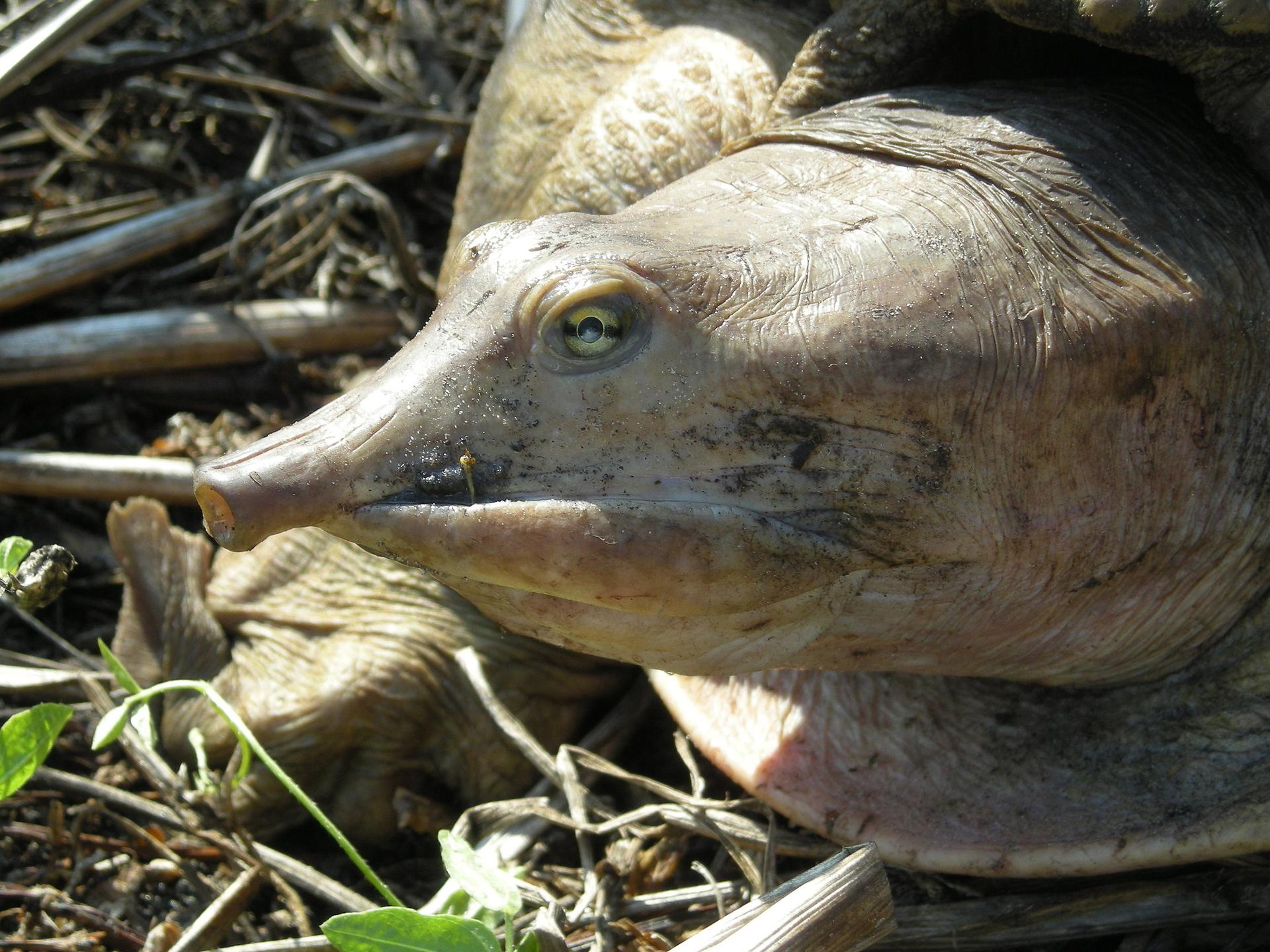 CAPE CANAVERAL, Fla. – The closeup of this Florida softshell turtle shows its snorkel-like snout. A totally aquatic freshwater turtle, it prefers lakes and slow-moving rivers. It was spotted near the Shuttle Landing Facility at NASA's Kennedy Space Center. The species main food is crayfish, fish, frogs, tadpoles and some vegetation. It ranges throughout all of Florida. Kennedy shares a boundary with the Merritt Island Wildlife Nature Refuge, which is a habitat for more than 310 species of birds, 25 mammals, 117 fishes and 65 amphibians and reptiles. Photo credit: NASA/Kenny Allen