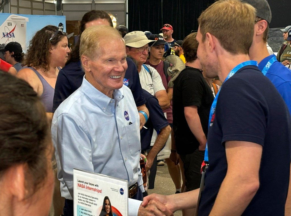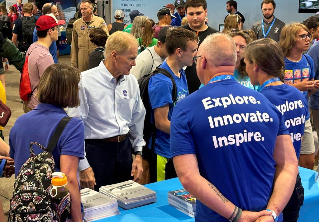 NASA Administrator Bill Nelson just paid a visit to the NASA Pavilion here. He toured all the exhibits, met with our Oshkosh team, and snapped some selfies with members of the public.