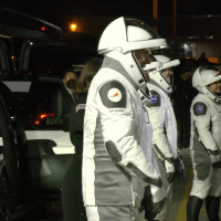 Suit leak checks are complete for NASA’s SpaceX Crew-12 as they prepare to leave the Astronaut Crew Quarters at the Neil A. Armstrong Operations and Checkout Building to head to Space Launch Complex 40 at Cape Canaveral Space Force Station in Florida for launch.
