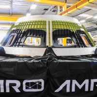 The spacecraft adapter cone (seen at the bottom of the stack pictured above) connects to the bottom of Orion’s service module and will later join another adapter connected to the top of the rocket’s interim cryogenic propulsion stage. During the process to install the cone on Orion, the spacecraft is lifted out of the Final Assembly and Systems Testing, or FAST, cell and placed into the Super Station support fixture.