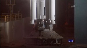 The rocket’s second-stage engine is going through a series of steering checks called “slews.” The first-stage engine check is up next.
