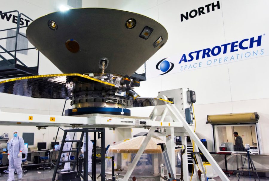 Inside the Astrotech processing facility at Vandenberg Air Force Base in California, NASA’s Interior Exploration using Seismic Investigations, Geodesy and Heat Transport, or InSight, spacecraft has been mounted on to a rotation fixture for testing. InSight is scheduled to launch May 5, atop a United Launch Alliance Atlas V rocket for its trip to Mars. …