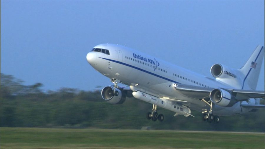The L-1011 “Stargazer” aircraft carrying the Pegasus XL rocket is beginning its second 180-degree course reversal. This turn will put the vehicle on the path to the drop point. The release mechanism for the rocket is armed and the CYGNSS spacecraft is on internal power.