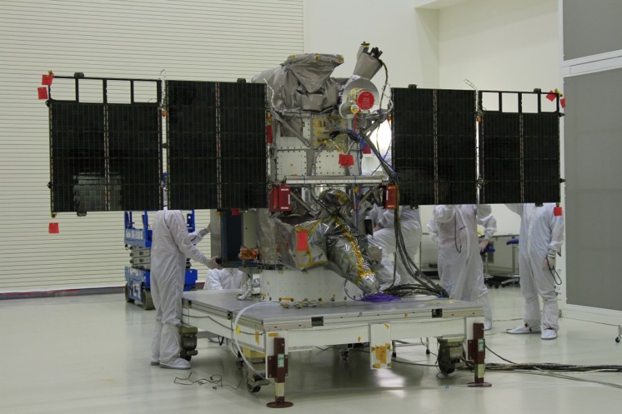 NOAA’s DSCOVR spacecraft is about the size of a refrigerator before its solar panels are unfolded. It measures 5.4 feet by 6 feet and weighs 1,256 pounds. It carries five instruments, three from NOAA and two from NASA.