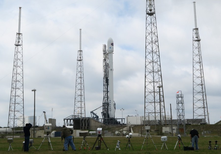 The scene this morning at SLC-40 at Cape Canaveral Air Force Station in Florida as reporters readied their cameras for this evening’s liftoff of NOAA’s DSCOVR spacecraft atop a SpaceX Falcon 9 rocket.