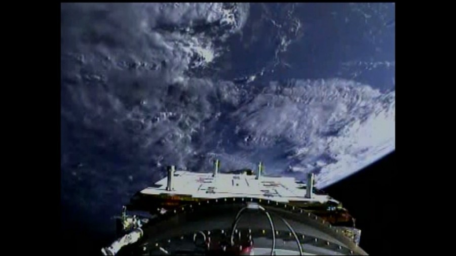 “And there go the arrays,” NASA TV Commentator George Diller said as SMAP’s three-panel solar array began to open. The spacecraft is power-positive. Deployment of the first CubeSat P-POD, FIREBIRD, is expected in about 45 minutes.