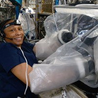 NASA Flight Engineer Jeanette Epps was on her second day of installing a small satellite orbital deployer inside the Kibo laboratory module’s airlock. Three CubeSats are packed into the device and will soon be deployed into Earth orbit for a variety of communications and technology studies. Afterward, Epps partnered with Dyson and NASA astronaut Mike Barratt transferring cargo in and out of the SpaceX Dragon cargo spacecraft.