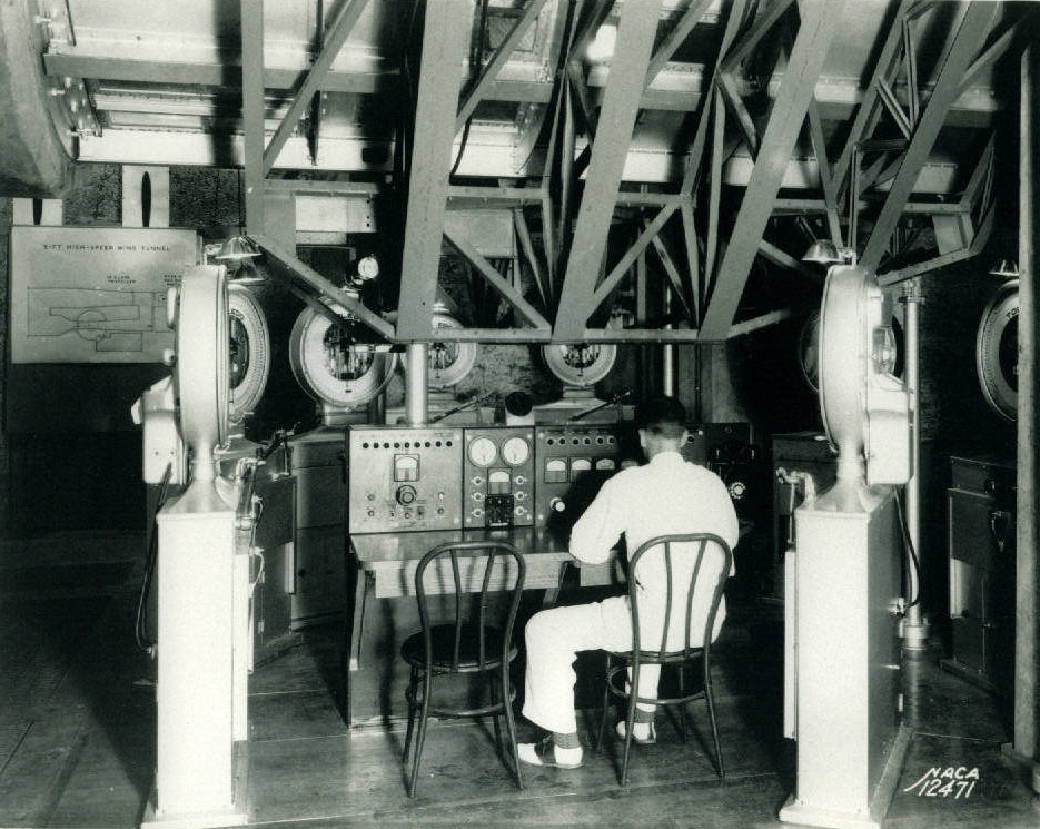 Within a short time, the tunnel’s aluminum fan blades suffered from fatigue failure. Retired researcher John Becker recalled, “At 3:06 a.m. on October 8, 1937, I was running the tunnel at full power and had just promised the operator at the Hampton generating plant that I would reduce power gradually when, without warning, there was a sickening break in the steady roar of the 550-mph wind. Acrid smoke filled the test chamber as I pushed the red emergency button, no doubt blowing the safety valves in Hampton. On entering the tunnel, we found the huge multi-bladed drive fan twisted and broken. The cast aluminum alloy blades had failed in fatigue from vibrations induced by their passage through the wakes of the support struts. Operations were suspended until March 1938, and the staff was temporarily dispersed to other sections.”
