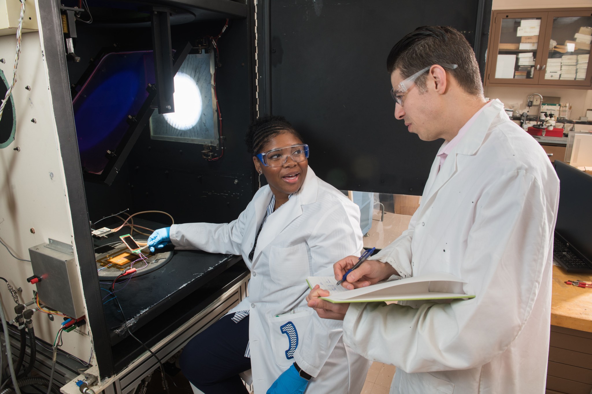 Engineers Lyndsey McMillon-Brown and Timothy Peshek are leading a project to test perovskite solar cells, which could be an alternative to silicon solar cells currently used in space. This material is a relatively new discovery, and it has many advantages for solar technology. Not only is perovskite an incredible conductor of electricity, but it also can be transported into space as a liquid and then printed onto panels on the Moon or Mars, unlike silicon panels that have to be built on Earth and then shipped to space.