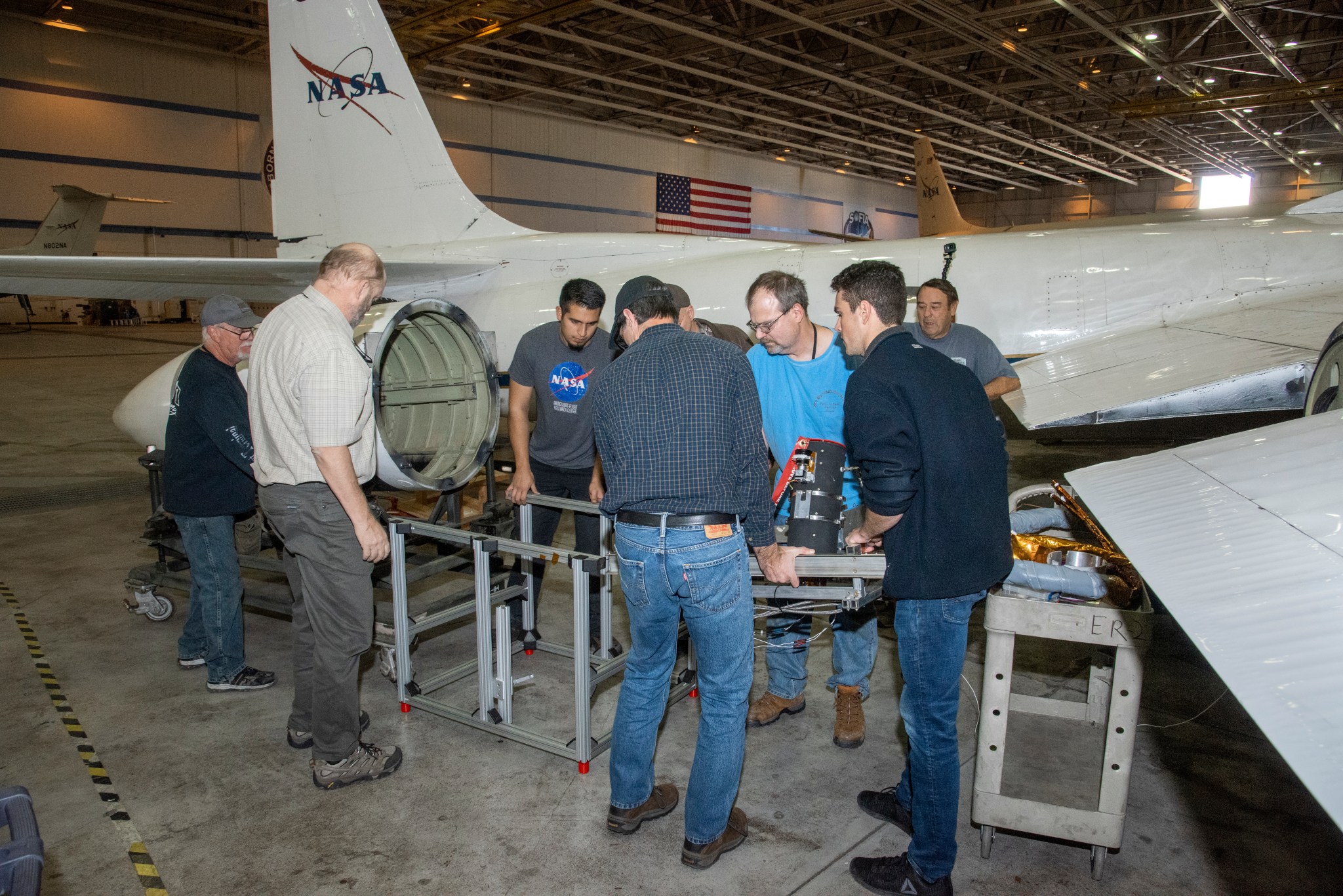 The airborne Lunar Spectral Irradiance Instrument (air-LUSI) is flying aboard NASA’s ER-2 airplane. The ER-2 is able to soar above clouds, about 70,000 feet above ground. The flights, which occur at night to avoid scattered light from the Sun, began Nov. 13 and will wrap up Nov. 17 from NASA’s Armstrong Flight Research Center in Palmdale, California.