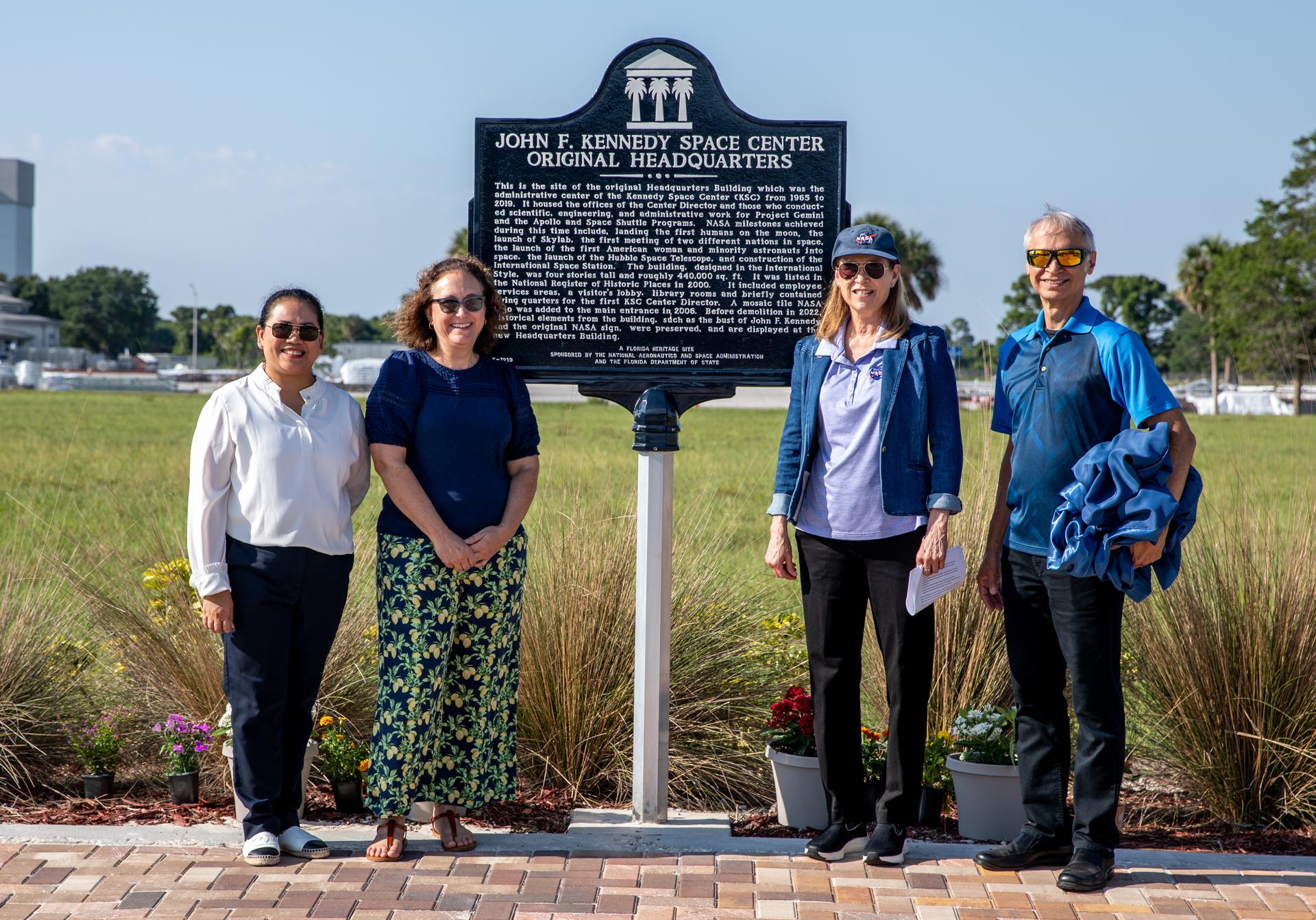 Officials unveiled a large bronze historical plaque on May 28 to mark the location of NASA’s Kennedy Space Center’s original headquarters building just west of the current Central Campus Headquarters Building on NASA Parkway.