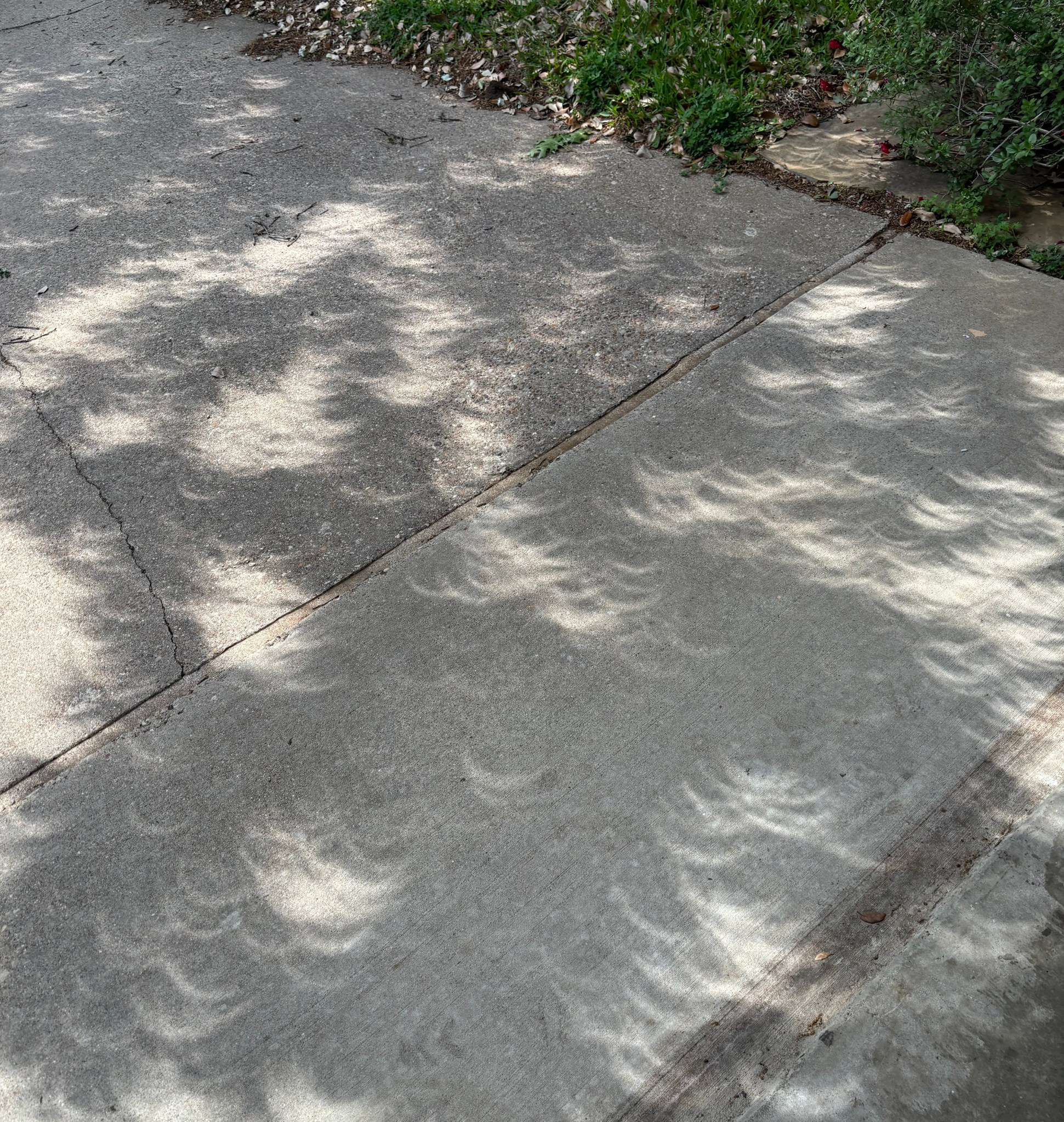Equipped with the proper eye protection, I traveled over one thousand miles to Dallas, Texas, to be in the eclipse’s path of totality. As I got situated in a park near the city, I was excited—I’d read books and seen photos of what an eclipse looked like and knew what to expect, but I also knew that seeing it in person would be something greater than fiction. Slowly but surely, the Moon took more and more “bites” out of the sun, until I saw the last little peek of light before the darkness; this is known as the “diamond ring effect.”