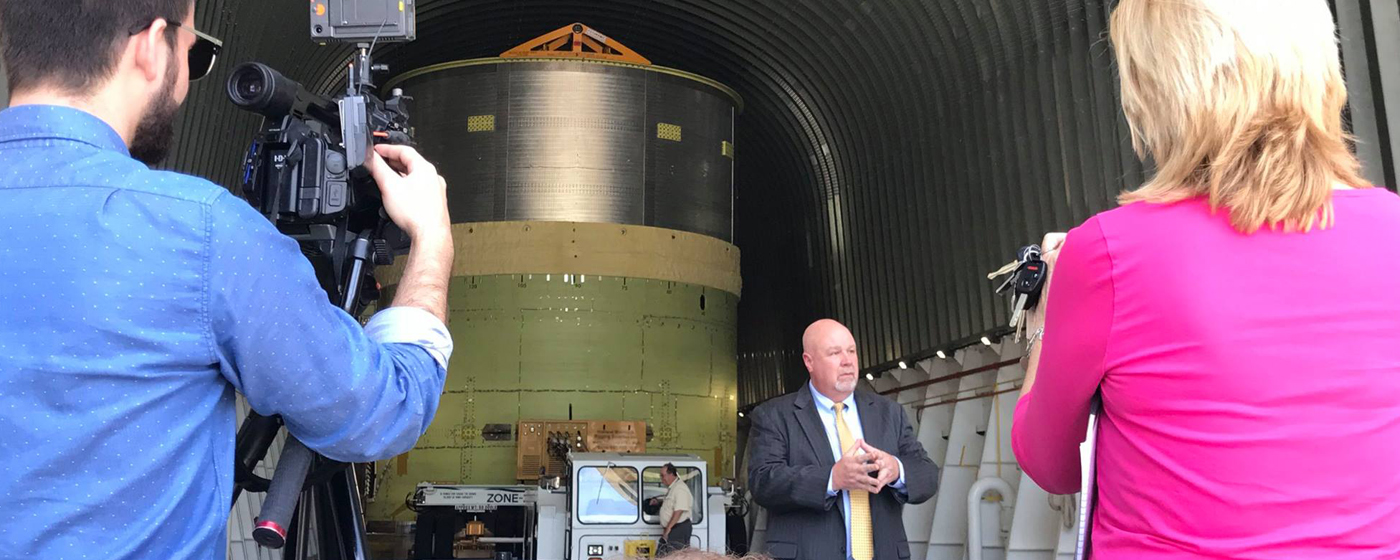 After an 18-day journey by barge from NASA’s Michoud Assembly Facility in New Orleans, structural test hardware for NASA’s new heavy-lift rocket, the Space Launch System, arrived at NASA’s Marshall Space Flight Center this week. The engine section structural test article is the first major SLS core stage test hardware manufactured at Michoud to be sent to Marshall for testing.