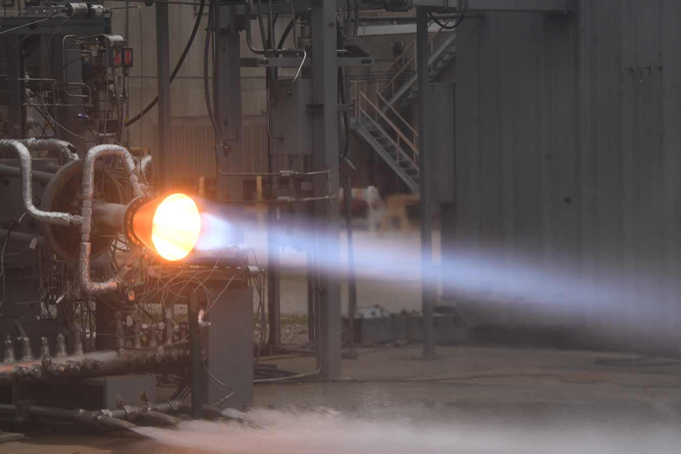 The team recently hot fire tested their lightweight combustion chamber and nozzle. Other hardware for this testing included injectors and carbon composite nozzles that were recently tested under the Long Life Additive Manufacturing Assembly project.