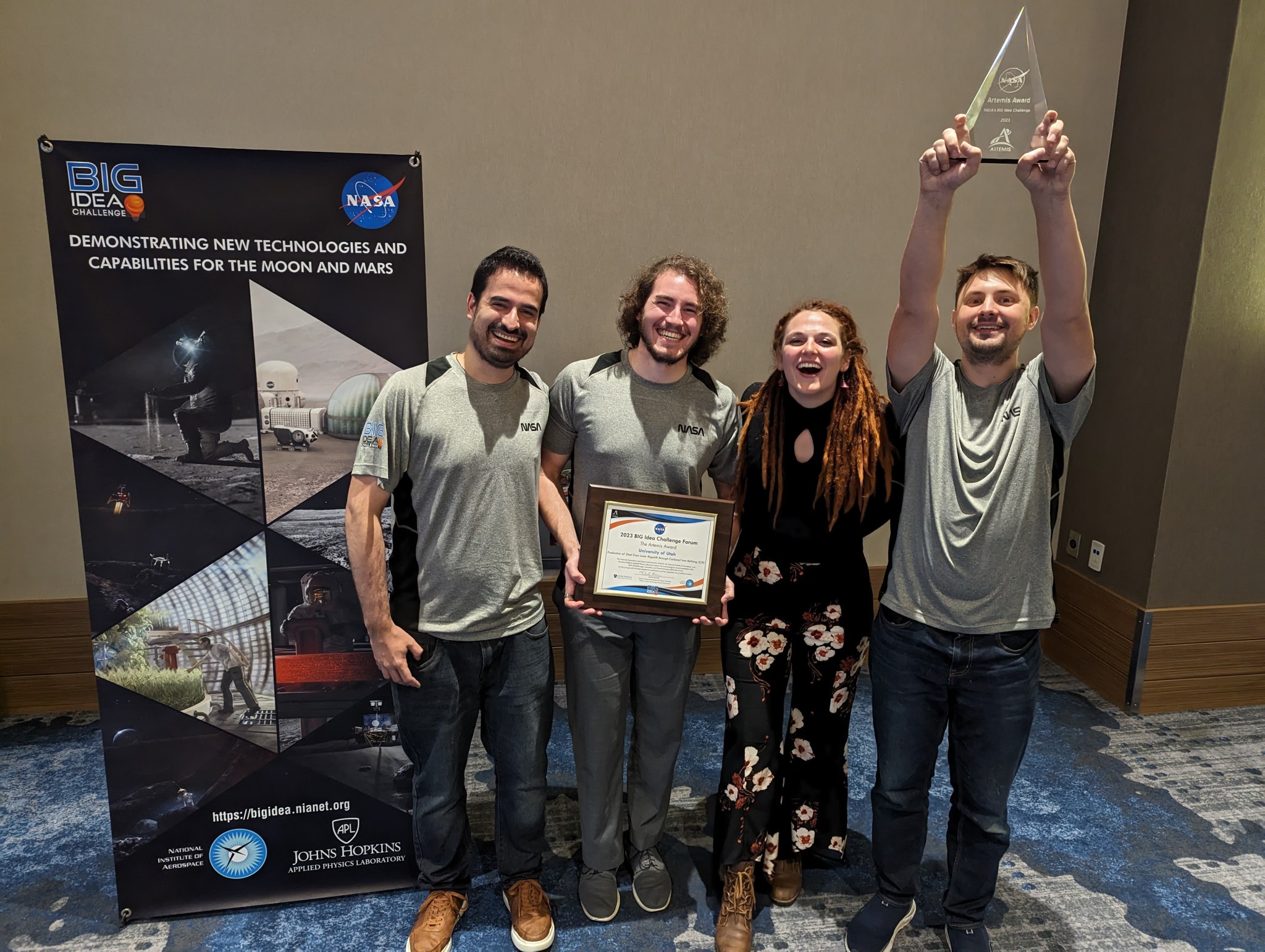 The University of Utah team, partnering with Powder Metallurgy Research Laboratory, earned the Artemis Award, which represents top honors in the 2023 BIG Idea Challenge. Their lunar forge project, Production of Steel from Lunar Regolith through Carbonyl Iron Refining (CIR), represents a promising avenue to extract iron from reduced lunar regolith and refine it into a high purity powder product in a two-stage process. The Artemis Award is given to the team whose concept has the best potential to contribute to and be integrated into an Artemis mission.