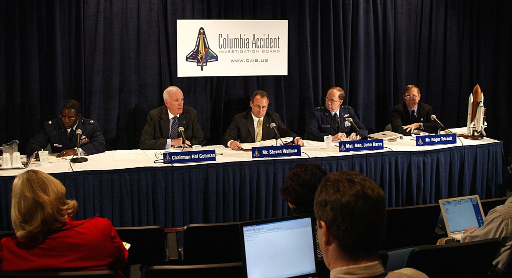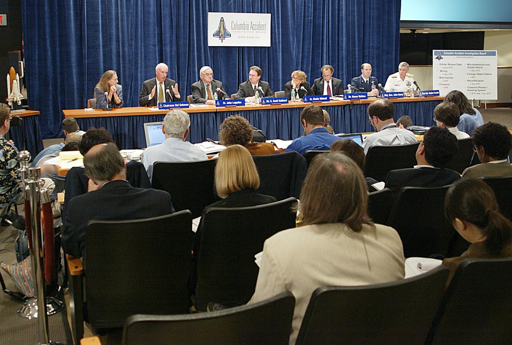 Columbia Accident Investigation BoardThe 13 member Columbia Accident Investigation Board poses for a group photo taken in the CAIB boardroom. The official STS-107...Admiral Hal Gehman, USNCAIB Chairman Hal Gehman holds a model of the shuttle as he speaks with reporters.CAIB Chairman Hal Gehman makes opening remarks to reporters.The CAIB panel for the April 22, 2003 press briefing held at the NASA Hilton in Houston included (from left...Dr. Hallock presents ‘Off-Nominal Flight Data’ information at the Press Briefing.The CAIB panel includes (left-right) Brig. General Duane Deal, Steven Wallace, Dr. Douglas D. Osheroff, Chairman Hal Gehman, Dr. John...The CAIB is represented at a press briefing held at the NTSB headquarters in Washington DC on June 24 by...The Columbia Accident Investigation Board (CAIB) held a press conference on May 28, 2003 at the Lunar & Planetary Institute...The Columbia Accident Investigation Board (CAIB) held a press conference on May 28, 2003 at the Lunar & Planetary Institute...The CAIB was represented by (left to right) CAIB PAO who facilitated the press briefing, CAIB Chairman Hal Gehman, Brig....The CAIB held a public hearing at the National Transportation Safety Board (NTSB) on June 12th. Board members attending were...Members of the Columbia Accident Investigation Board (CAIB) were on hand at the National Transportation Safety Board (NTSB) conference center...Columbia Accident Investigation Board (CAIB) Chairman Hal Gehman makes opening remarks to reporters at the National Transportation Safety Board (NTSB)...The CAIB held a public hearing at the National Transportation Safety Board (NTSB) on June 12th. Board members attending were...The CAIB held a press briefing in Washington D.C. on July 11th. The briefing Laura Brown, CAIB PAO (on the...The CAIB was represented at a press briefing on June 12th at the National Transportation Safety Board (NTSB) by the...The Columbia Accident Investigation Board (CAIB) held a press briefing on May 20, 2003 at the Lunar & Planetary Institute...The CAIB panel for the May 6, 2003, Public Hearing held at the Hilton Houston-Clear Lake included (left to right):...CAIB Chairman Hal Gehman flanked by Steven Wallace (left) and Dr. Douglas D. Osheroff (right) makes opening comments to the...Laura Brown moderates questions from reporters during a CAIB press briefing.The panel for the April 15, 2003 CAIB Press Briefing includes CAIB Chairman Hal Gehman, Rear Admiral Stephen Turcotte, Maj....CAIB Panel includes (from left to right) moderator Lt. Colonel Woody Woodyard, Chairman Hal Gehman, Steven Wallace, Maj. General John...CAIB representatives (left to right) are Scott Hubbard, Brig. General Deal, Steven Wallace, Chairman Gehman, Roger E. Tetrault, Rear Admiral....CAIB board members (left to right), Dr. James N. Hallock, Brig. General Deal, Steven Wallace, Chairman Hal Gehman with Laura...CAIB board members (left to right), Dr. James N. Hallock, Brig. General Deal, Steven Wallace, Chairman Hal Gehman with Laura...CAIB board members speak with reporters following the press briefing.CAIB Chairman Gehman responds to questions.