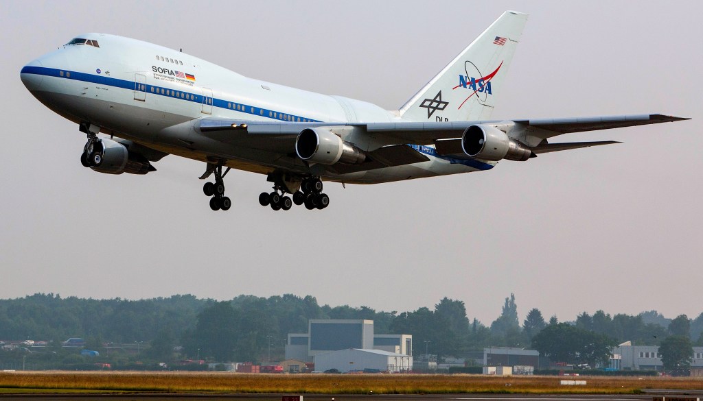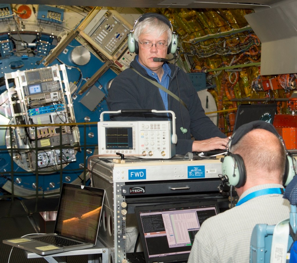 SOFIAThis high-dynamic range (HDR) photo of the Stratospheric Observatory for Infrared Astronomy (SOFIA) was captured just before sunset at the...SOFIA Flight 239 with Nichelle Nichols and AAAsSOFIA Flight 239 with Nichelle Nichols and AAAsGround Support Engineer Greg Perryman services the FORCAST instrument onboard the Stratospheric Observatory for Infrared Astronomy (SOFIA) during the observatory’s...Scientists onboard SOFIA watch data come in from Pluto’s atmosphere as SOFIA flies into the shadow the dwarf planet cast...Technicians fill SOFIA’s instrument with liquid nitrogen and helium to keep the detectors cold.SOFIA New Zealand Deployment Flight 116.The Stratospheric Observatory for Infrared Astronomy (SOFIA)SOFIA receiving a water-arch salute from the Christchurch International Airport fire brigade after landing in New Zealand (1:55pm local time...Representatives of New Zealand media onboard SOFIA during a tour.Maori elder Aroha Reriti-Crofts (center) reading a traditional blessing ceremony for SOFIA and all who fly on her.SOFIA's predecessor, the Kuiper Airborne Observatory (KAO), was dedicated on May 21, 1975. Carrying a 36 inch telecope, the KAO...SOFIA will attempt to observe another occultation on June 29.SOFIA New Zealand Deployment Flight 116.SOFIA can identify spectral fingerprints of the processes creating the universe’s water at wavelengths inaccessible to any other observatory.Images of Comet ISON were obtained using SOFIA’s FORCAST camera at wavelengths of 11.1, 19.7, and 31.5 microns. Measurements at...Researchers using SOFIA have captured new images of a ring of gas and dust seven light-years in diameter surrounding the...SOFIA mid-infrared image of the planetary nebula Minkowski 2-9 (M2-9), also known as the Butterfly Nebula.Infrared image of Jupiter from SOFIA’s First Light flight composed of individual images at wavelengths of 5.4 (blue), 24 (green)...The central portion of galaxy M82 includes the position of Supernova 2014J (north is at the top, east is to...Infrared image of the heart of the Orion star-formation complex taken using the FORCAST mid-infrared camera.Like most modern research telescopes, the SOFIA telescope uses a mirror to concentrate and focus the incoming light.How do you keep a telescope stable while flying at 40,000 feet?Christian Fischer checks the FIFI-LS that is cooled by liquid nitrogen and helium during testing.Christian Fischer, from the University of Stuttgart's Institute for Space Systems, works on the Field-Imaging Far-Infrared Line Spectrometer, or FIFI-LS,...These images from NASA's Spitzer Space Telescope of C/2012 S1 (comet ISON) were taken on June 13, when ISON was...SOFIA’s flight crew prepare to takeoff from the U.S. Antarctic Program facility at Christchurch International Airport in Christchurch, New Zealand,...The SOFIA flying observatory taxis to the Christchurch, New Zealand, terminal after a nighttime flight to study celestial objects visible...
