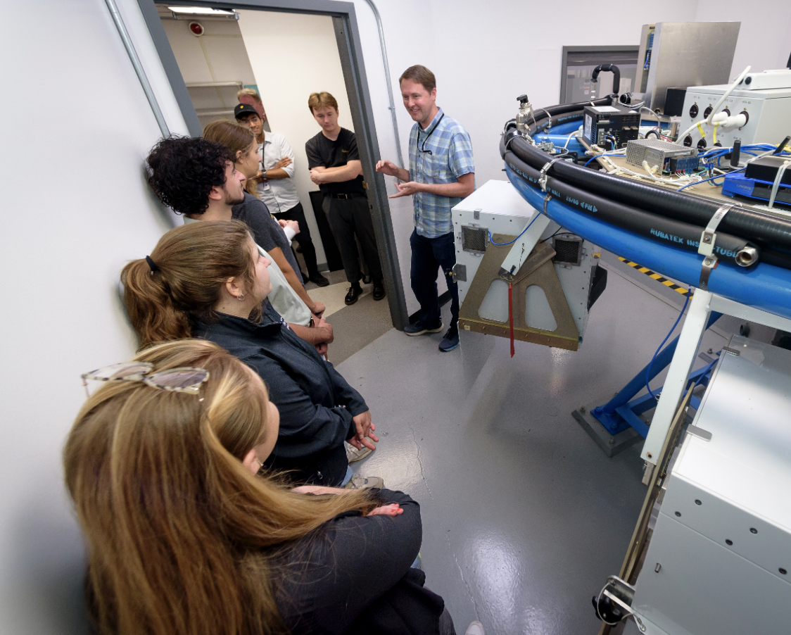 He also met with two Ames interns from New Zealand’s Space Scholarship program, Alex McKendry, who is researching neuromorphic computing applications in small spacecraft autonomy, and Faun Watson, who is using the Low Density Shock Tube to simulate sustainable satellite de-orbiting technology. The students are here under the NASA International Internships Project.