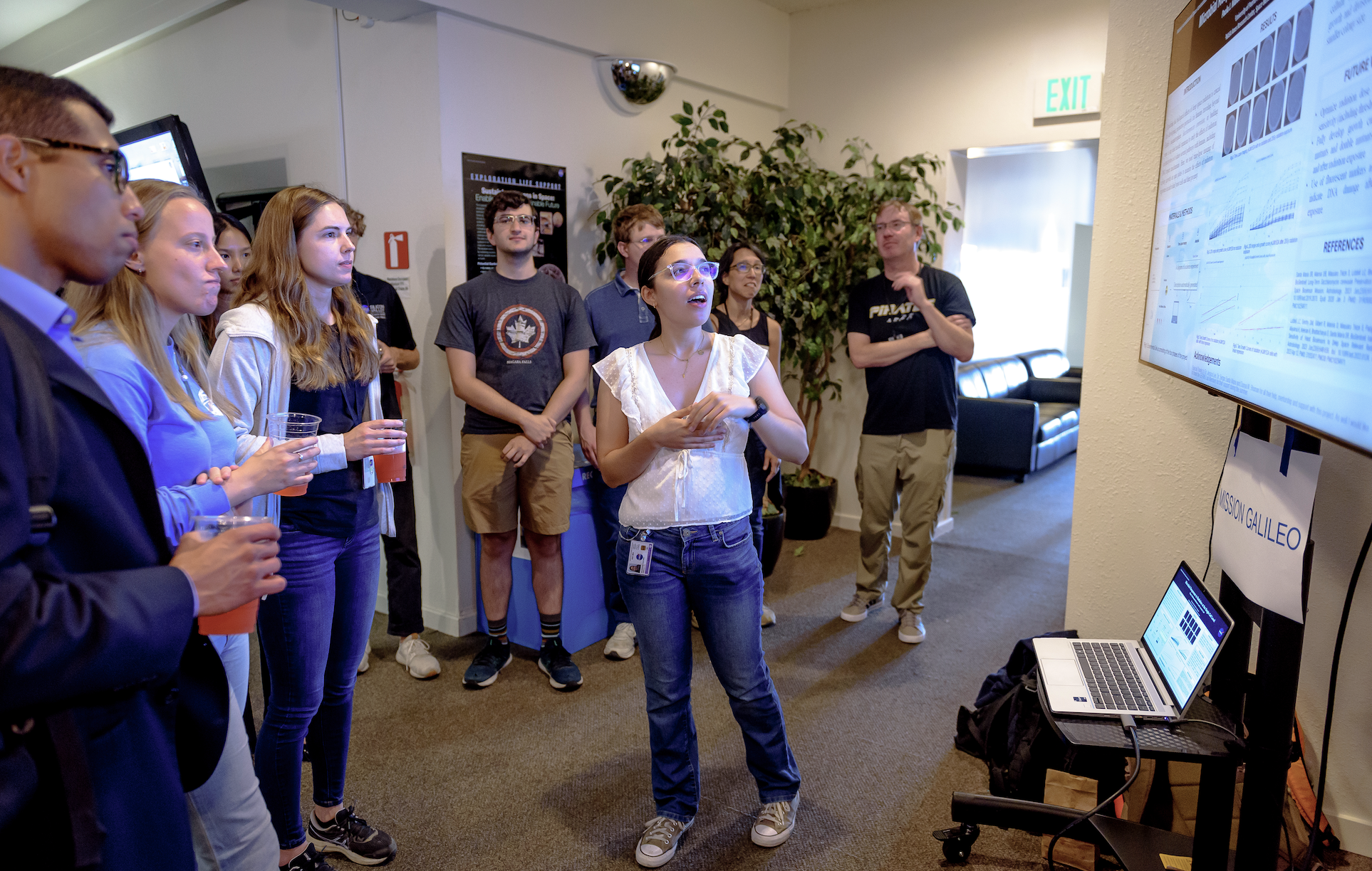 Ames summer interns presented their research projects that they worked on during the summer to center leadership and mentors during a poster session event in Building 3 in the NASA Research Park.