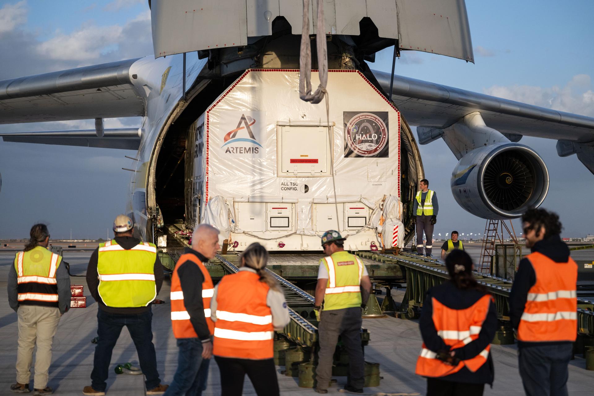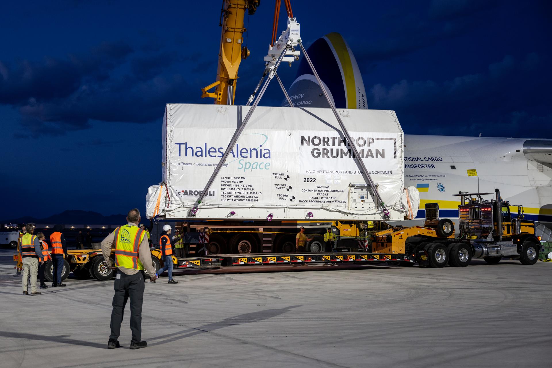 Gateway’s HALO arrived in Mesa, Arizona, after traveling from Italy, where Thales Alenia Space fabricated its primary structure. Delivered by cargo aircraft to Phoenix-Mesa Gateway Airport, HALO was then transported to Northrop Grumman’s facility in Gilbert for final outfitting.