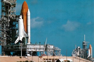 Left: The Spaceborne Imaging Radar-C (SIR-C) in Endeavour’s payload bay in the Orbiter Processing Facility at NASA’s Kennedy Space Center in Florida. Middle: Endeavour on Launch Pad 39A. Right: STS-68 crew in the Astrovan on its way to Launch Pad 39A for the Terminal Countdown Demonstration Test.