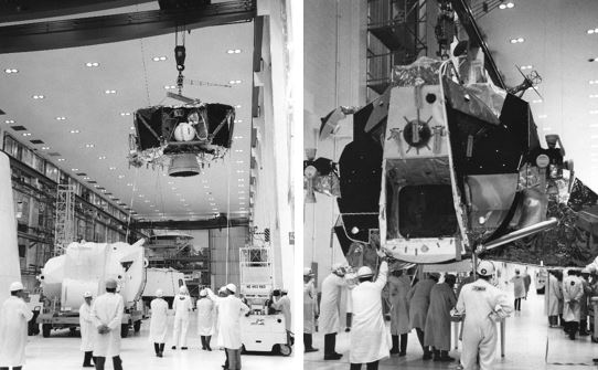 In preparation for Apollo 10, Grumman delivered the LM for that mission to KSC. The descent stage arrived October 11 followed by the ascent stage five days later. Technicians in the MSOB mated the two stages and installed the assembled vehicle into a vacuum chamber on November 2 to begin a series of tests.