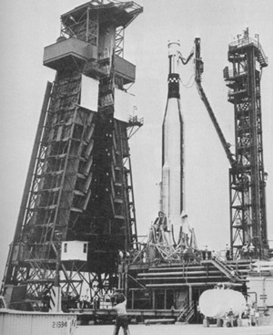 | Figure 125. The Gemini Atlas-Agena target vehicle undergoing systems tests at complex 14 prior to the Gemini X mission. (NASA Photo No. 66-H-989, released July 18, 1966.) |