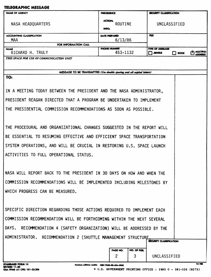 implementation of the Presidential Commission on the Space Shuttle
