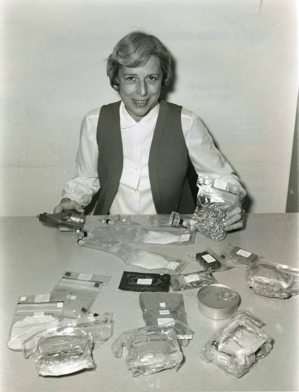 Left: Food for Gemini 3. Middle: Food specialist Rita M. Rapp with food for Apollo 16.