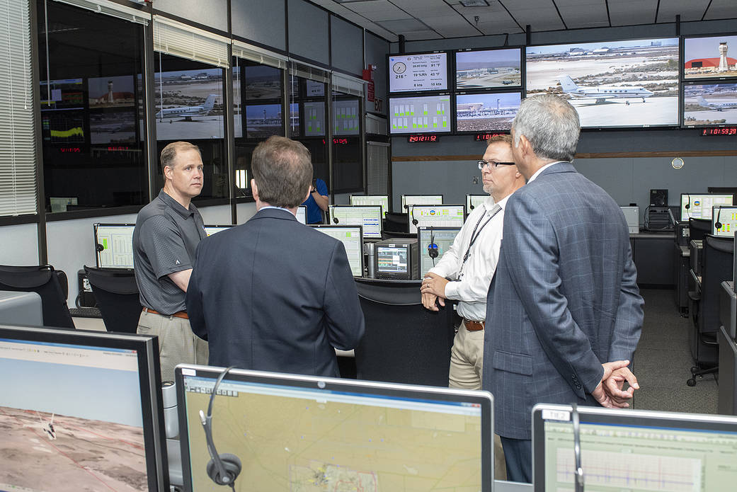 NASA Administrator Jim Bridenstine learned about the many uses for mission control rooms for flight research projects such as monitoring the flights for safety, gathering data, and talking to the pilot and project researcher.