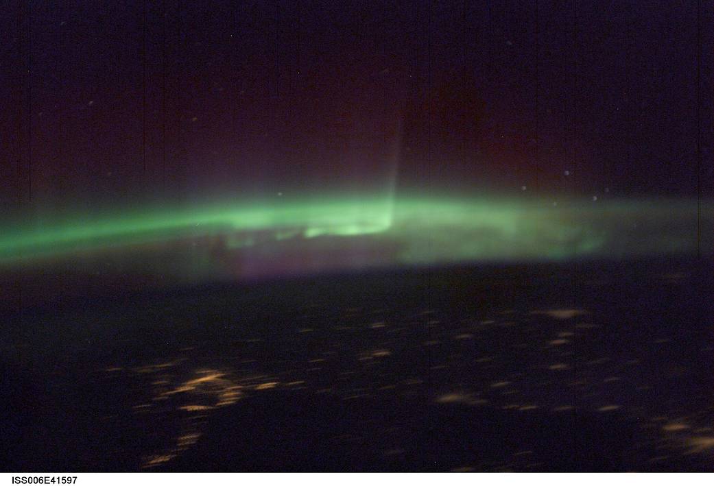 Astronauts onboard the International Space Station (ISS) have seen a lot of auroras in recent months. They’ve even flown through some. Usually the lights are green; sometimes they’re red. Other colors are rare. So when ISS science officer Don Pettit looked out the window on March 29th, 2003, and saw these striking blue-shaded auroras over Scandinavia, he had to grab his camera and take a picture.