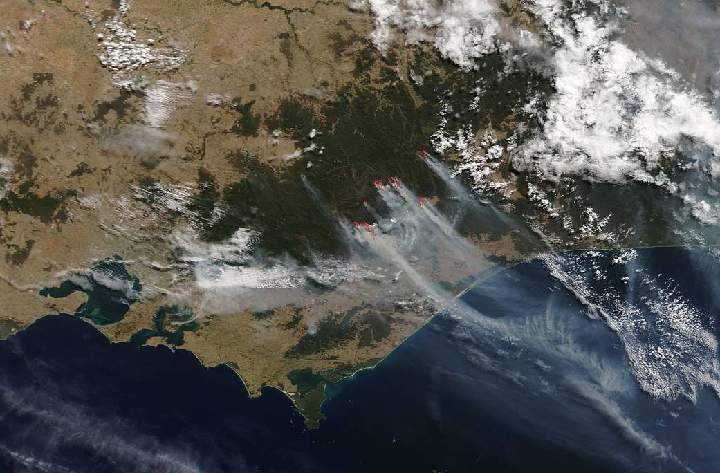 NASA’s Earth Observing System Data and Information System (EOSDIS) Worldview application provides the capability to interactively browse over 700 global, full-resolution satellite imagery layers and then download the underlying data. Many of the available imagery layers are updated within three hours of observation, essentially showing the entire Earth as it looks “right now.” This Terra satellite image was collected on March 04, 2019. Actively burning fires, detected by thermal bands, are shown as red points. Image Courtesy: NASA Worldview, Earth Observing System Data and Information System (EOSDIS). Caption: Lynn Jenner with information from the Bureau of Meteorology and the Emergency Victoria website.