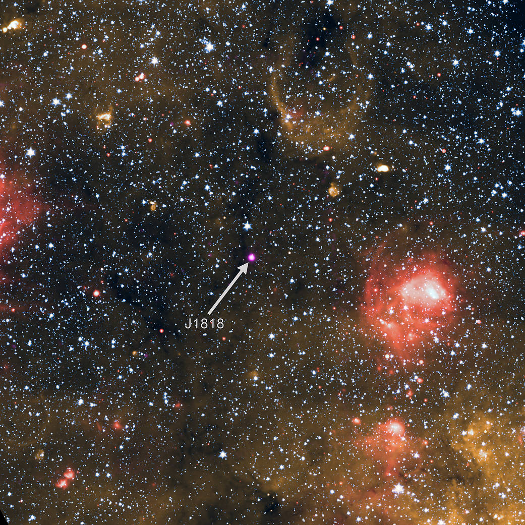 After follow-up observations, researchers determined that this object, dubbed J1818.0-1607, was special for other reasons. First, it may be the youngest known magnetar, with an age estimated to be about 500 years old. This is based on how quickly the rotation rate is slowing and the assumption that it was born spinning much faster. Secondly, it also spins faster than any previously discovered magnetar, rotating once around every 1.4 seconds.