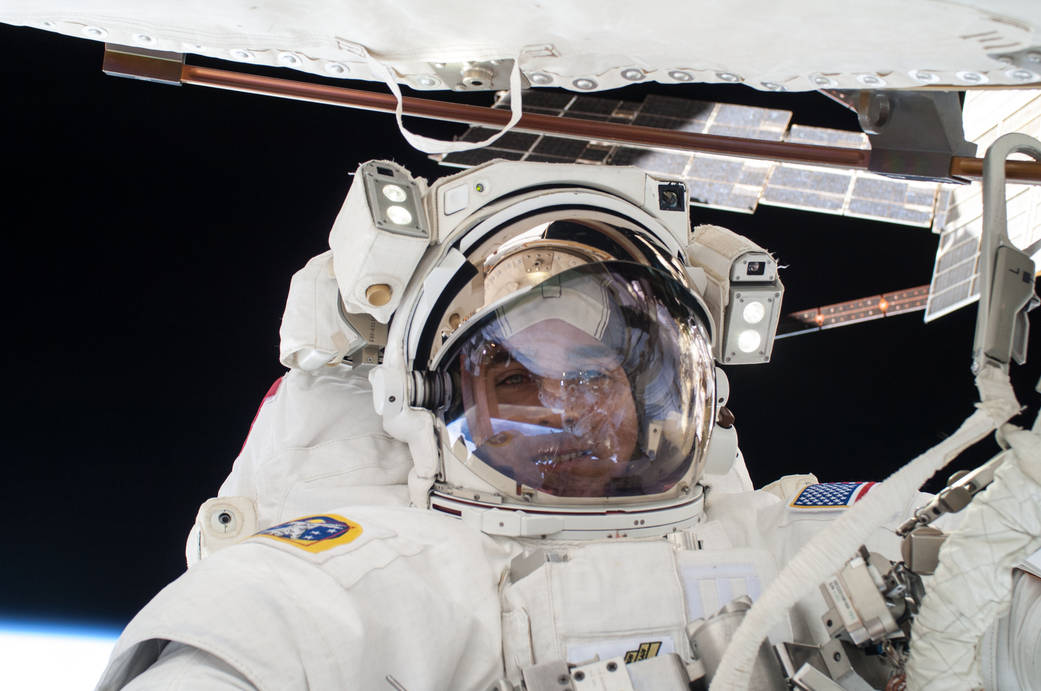 ISS036-E-016999 (9 July 2013) — NASA astronaut Chris Cassidy, Expedition 36 flight engineer, participates in a session of extravehicular activity (EVA) as work continues on the International Space Station. During the six-hour, seven-minute spacewalk, Cassidy and European Space Agency astronaut Luca Parmitano (out of frame), flight engineer, prepared the space station for a new Russian module and performed additional installations on the station’s backbone.