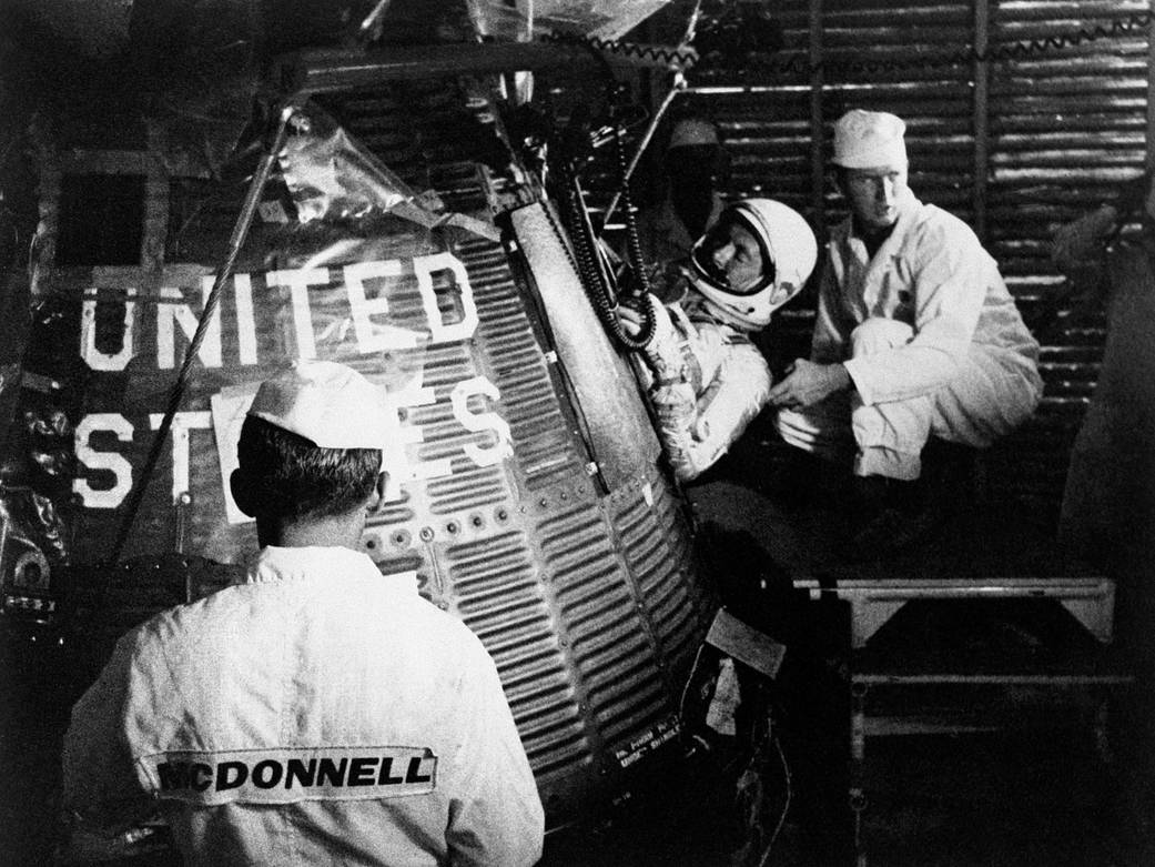 Astronaut Scott Carpenter climbs into Aurora 7 ahead of launching on the second American manned orbital flight on May 24, 1962.