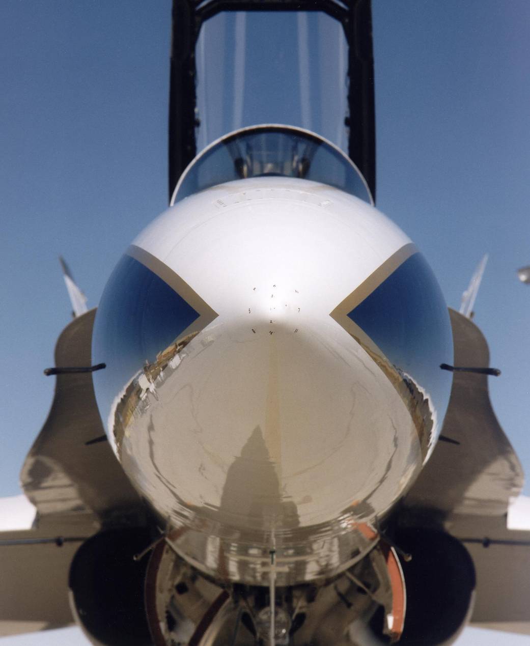 The small numbers on the nose of this F/A-18 aircraft at NASA’s Dryden Flight Research Center, Edwards, Calif., show the locations of 11 tiny holes which were an integral part of a new air data system installed on the aircraft.Mar 1997NASA Photo / › F-18 SRA Project Description