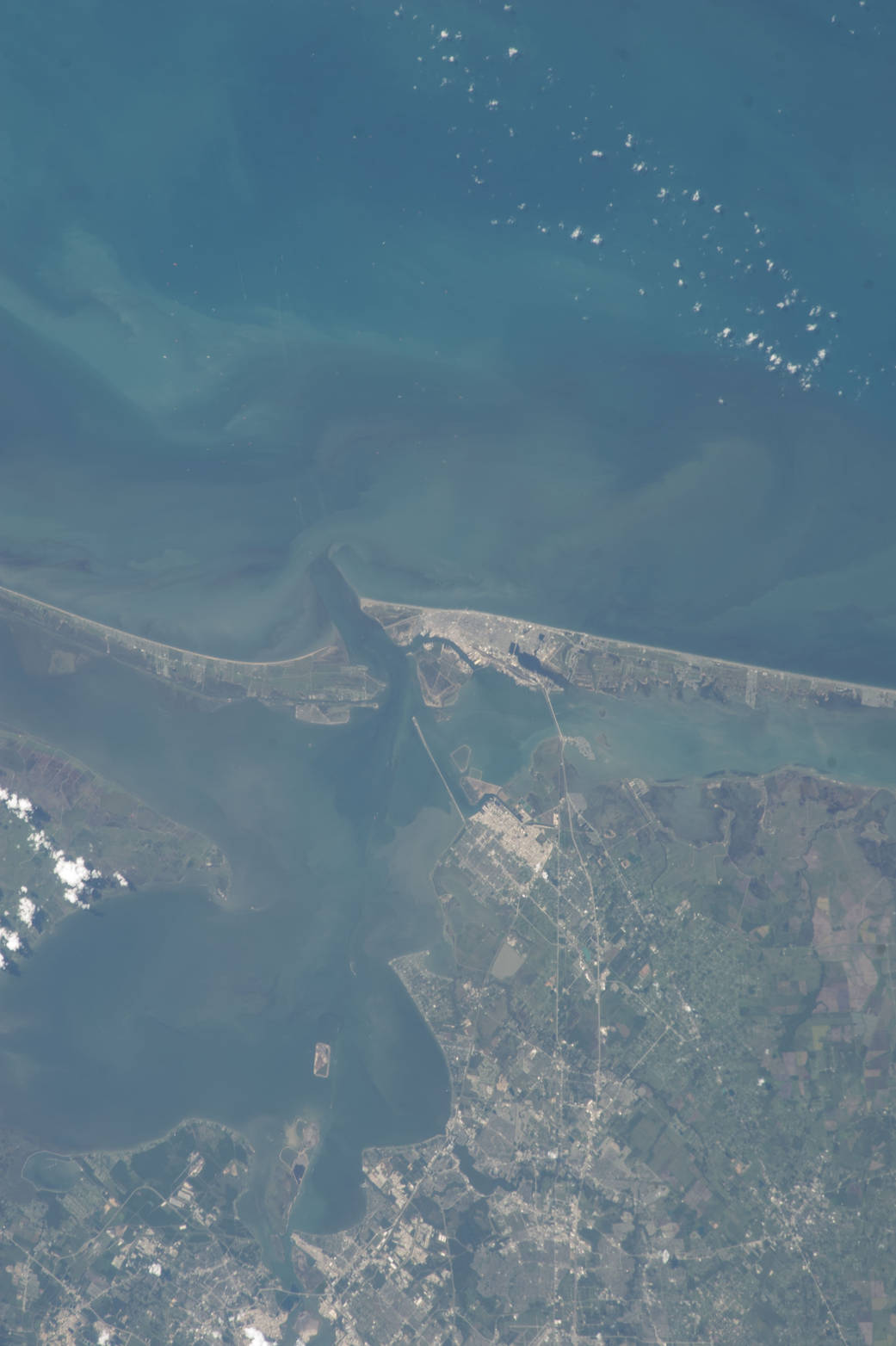 ISS036-E-037747 (28 Aug. 2013) — One of the Expedition 36 crew members aboard the International Space Station on Aug. 28 photographed this vertical image that shows much of Galveston County and a small portion of southeast Harris County, Texas. Gulf of Mexico waters take up the top half of the picture. Galveston Island runs from just left of center through center right of the image, and the Bolivar Peninsula, highly impacted by Hurricane Ike five years ago, is the land mass at left center. Galveston Bay takes up much of the lower left quadrant of the pictured area. The NASA Johnson Space Center, the normal work place for NASA astronauts Chris Cassidy and Karen Nyberg, currently onboard the orbital complex, is in the bottom portion of the frame.