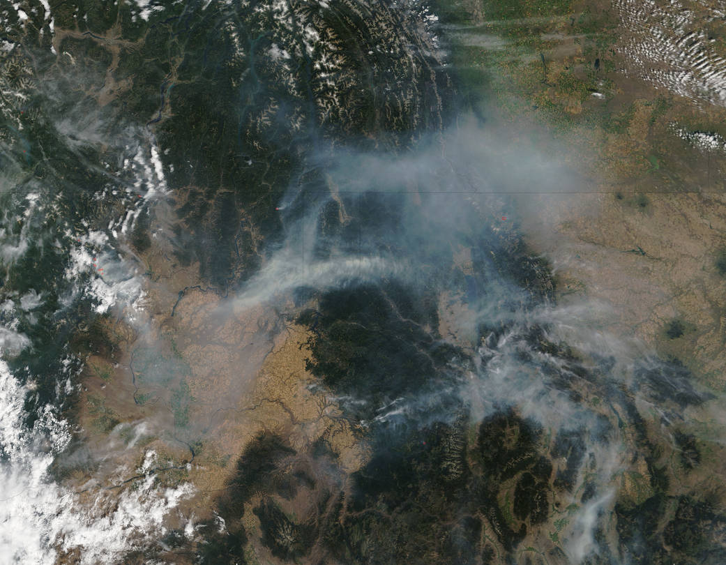 NASA’s Terra satellite spotted a large area of smoke from the Wolverine Fire that stretched over central and western Washington, northern Idaho and into western Montana.