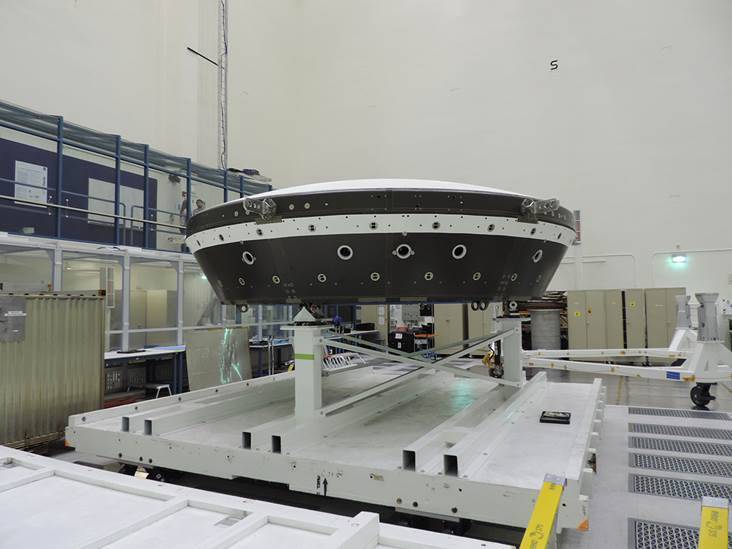 The main structural body of the second flight test vehicle in NASA’s Low-Density Supersonic Decelerator (LDSD) project is seen during its assembly in a cleanroom at NASA’s Jet Propulsion Laboratory. The flight test for this vehicle is planned for the summer of 2015.