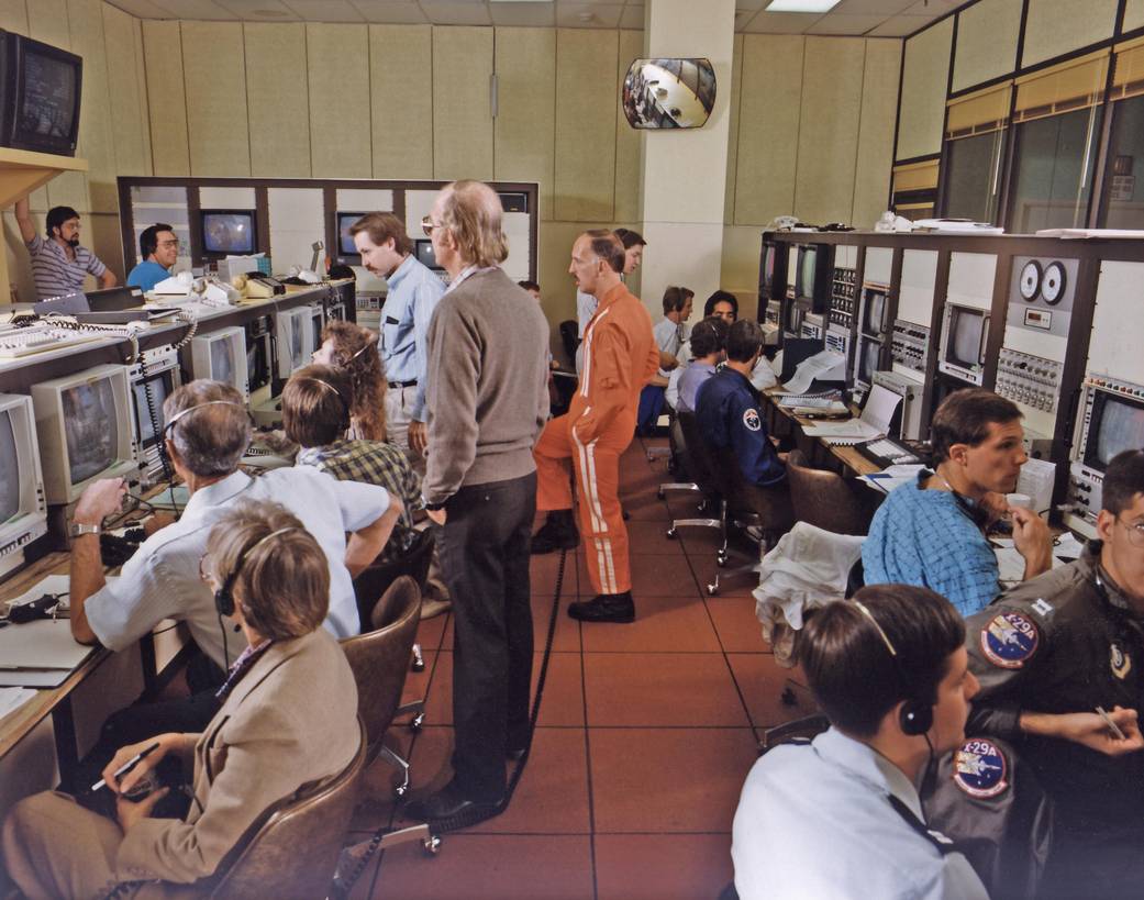 The mission control Gold room is seen here during a research flight of the X-29 at the Dryden Flight Research Center, Edwards, CA. All aspects of a research mission are monitored from one of two of these control rooms at Dryden.