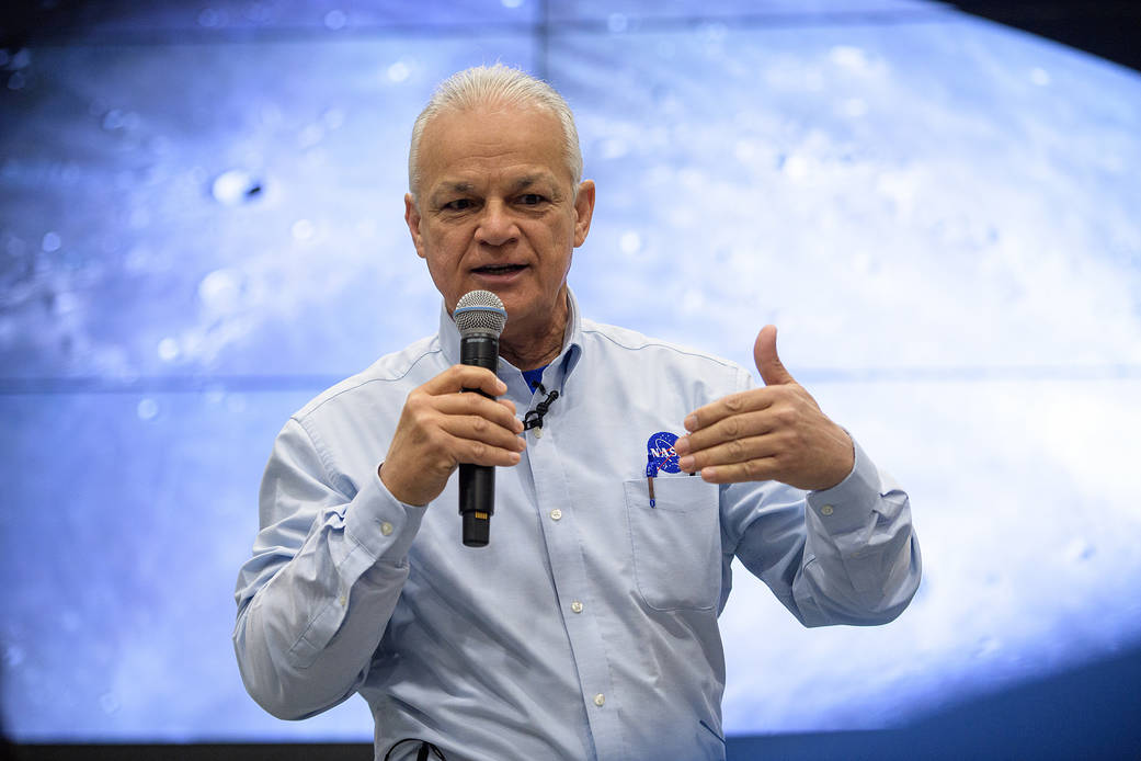 NASA Acting Chief Technologist Douglas Terrier speaks about technology challenges for the Moon, Mars, and beyond during Sneak Peek Friday at the USA Science and Engineering Festival, Friday, April 6, 2018 at the Walter E. Washington Convention Center in Washington, DC. The festival was held April 7-8. Photo Credit: (NASA/Joel Kowsky)