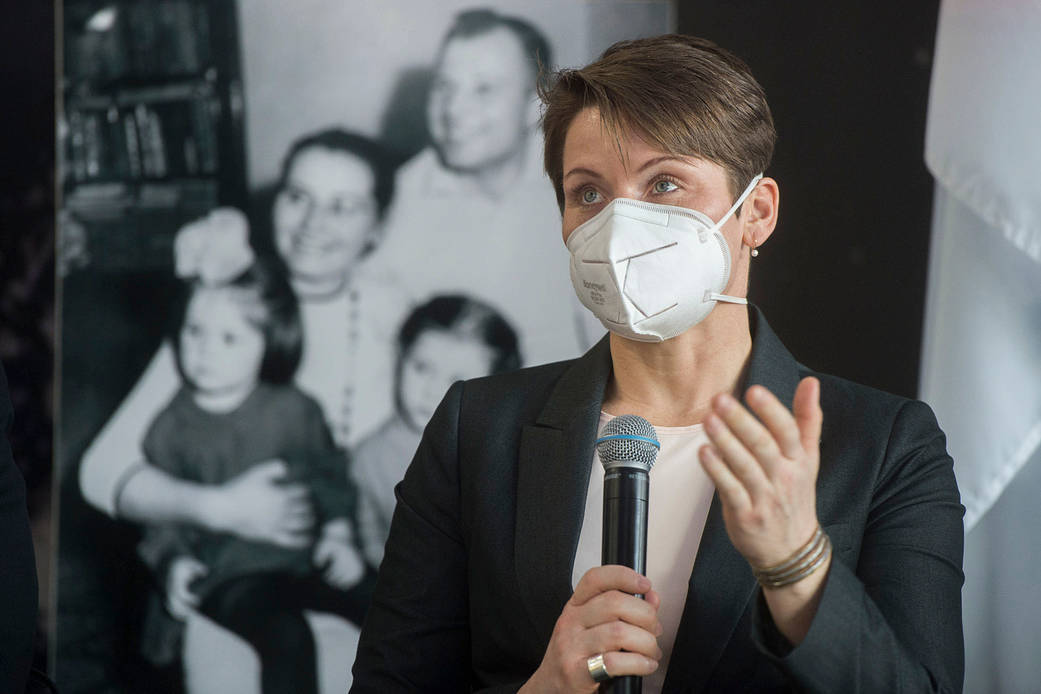 nhq202103240013 (March 2021) — Expedition 65 backup crew member NASA astronaut Anne McClain speaks during a press conference prior to the prime crew’s launch from the Baikonur Cosmodrome in Kazakhstan, Wednesday, March 24, 2021 at the Gagarin Cosmonaut Training Center (GCTC) in Star City, Russia. Photo Credit: (NASA/GCTC/Andrey Shelepin)