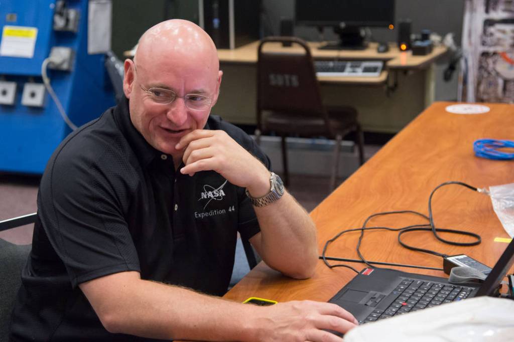 NASA astronaut Chris Cassidy works with the Synchronized Position Hold, Engage, Reorient, Experimental Satellites, or SPHERES.