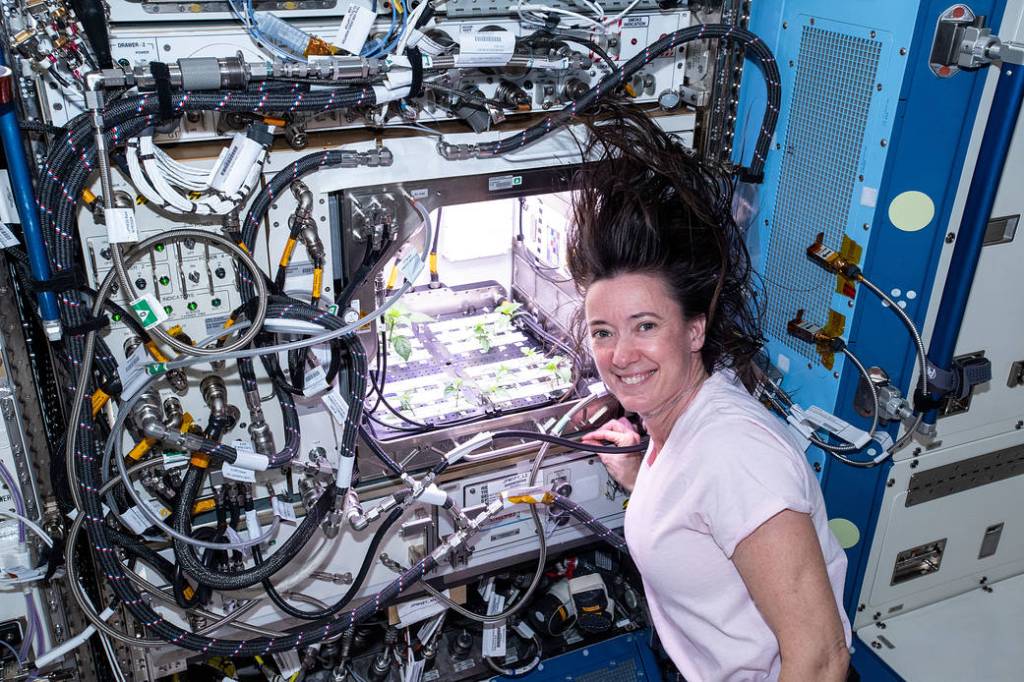 NASA astronaut Shane Kimbrough unpacks cargo bags inside the International Space Station.