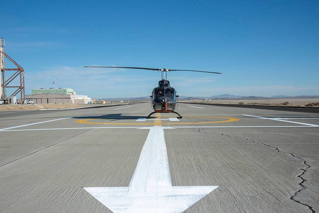 An illustration of NASA’s Ingenuity Helicopter flying on Mars.