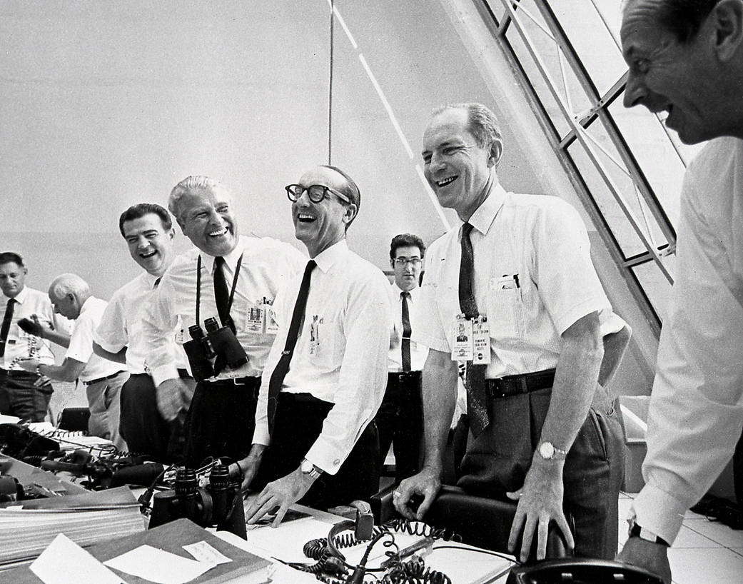 George Mueller, center, former NASA associate administrator of Manned Space Flight, died Oct. 12. Mueller, 97, was critical to NASA’s missions to the moon and instrumental in the initiation of the Skylab and space shuttle programs. Here, Mueller is joined in the control room during the Apollo 11 mission by Manned Space Flight Deputy Associate Administrator Charles W. Mathews, left; NASA Marshall Space Flight Center Director Wernher von Braun, second from left; and Apollo Program Director Samuel C. Phillips, right. The NASA History Program documents and preserves NASA’s remarkable history through a variety of products — photos, press kits, press releases, mission transcripts and administrators’ speeches. For more pictures like this one and to connect to NASA’s history, visit the History Program’s Web page.