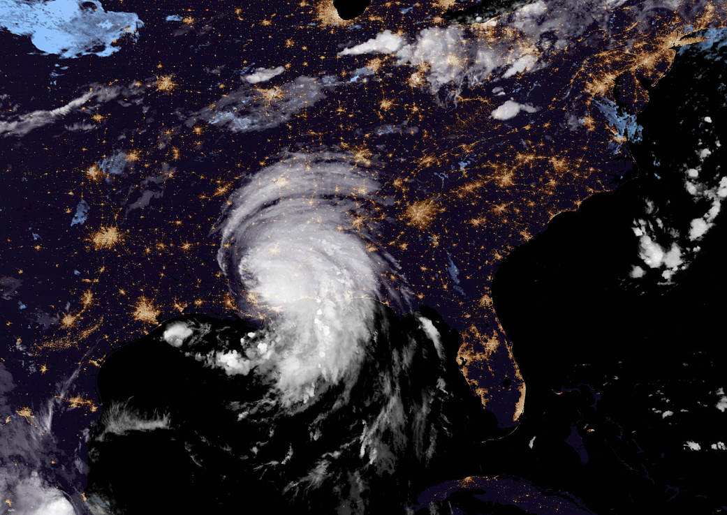 In this image, captured in the early morning hours of Monday, Aug. 30, Tropical Storm Ida is seen moving inland over portions of southeastern Louisiana, southern Mississippi, and southern Alabama. A NOAA GOES-East ABI GeoColor imagery layer has been applied over this image for additional visibility. Explore more images and data via NASA Worldview.